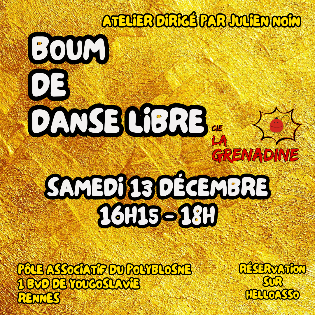 Prochain Atelier Boum de Danse Libre : Samedi 13/12/25, 16h15 - 18h, au Polyblosne de Rennes !